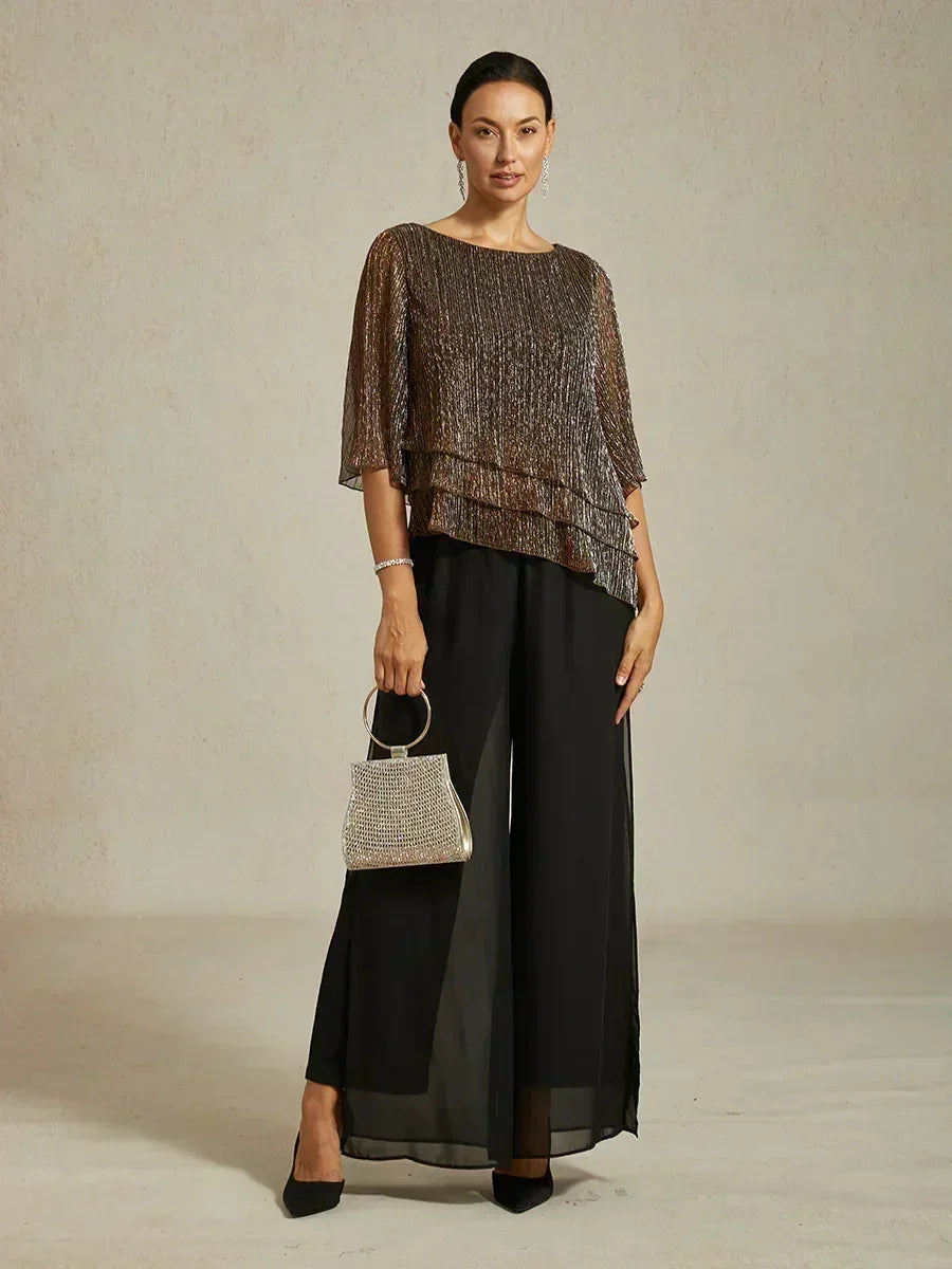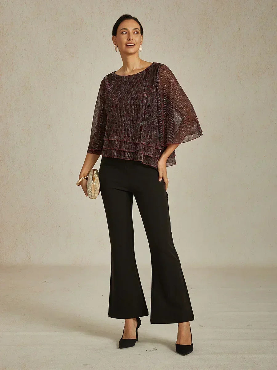 • Design: Relaxed fit with a round neckline, cape-style layered sleeves, and floral detailing for an elegant, feminine silhouette